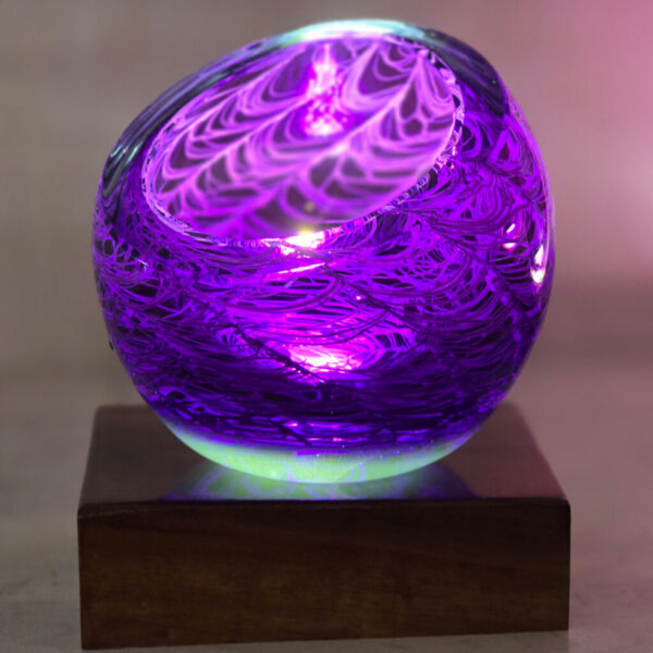 Situated on a hand-carved LED light base, the vessel becomes a statement piece that shines in elegant simplicity.