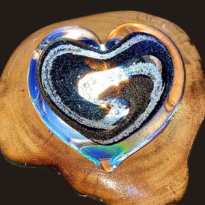 The organic textures and design of the Memorial Glass Sculpture make this a peaceful place to lay your loved one to rest. The design brings to mind the sea’s calm motion as the afternoon sun glistens just below the ocean’s surface. We incorporate just a teaspoon of their ashes into the glass art design to help you create the perfect piece to remember your loved one.