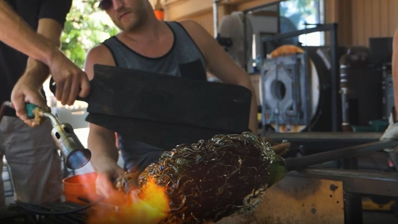 A reputable glassblowing studio, like Moana Glass, provides safety glasses to all participants of glassblowing lessons