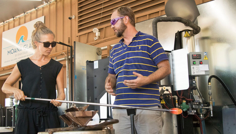 Leave the “Made in China” souvenirs behind in favor of a handblown glass sculpture from Moana Glass. Moana Glass is the only studio in Maui that allows you to take a private lesson and return home with a custom blown souvenir.